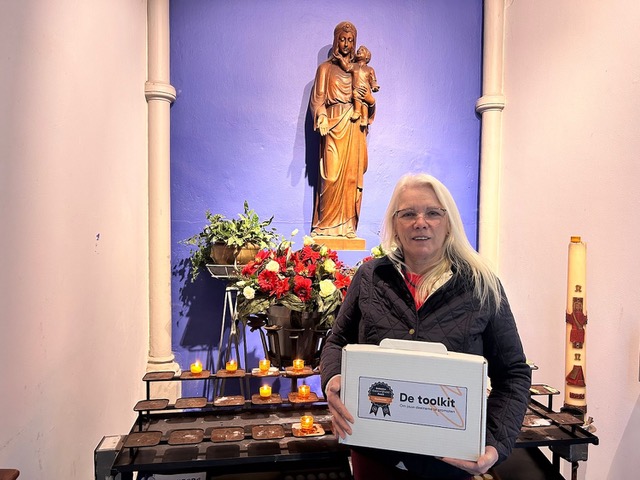 Gastvrouw en projectleider Ankie Joos heet ons allen van harte welkom. Ankie stelt de vakjurie voor: Nicole Scheffers (Efteling voorzitter), Heleen Huisjes (directeur Brabant Partners), Lenneke van Gerwen (Auberge du Bonheur, winnaar Brabantse Gastvrijheid Award ’19), Hanneke Koppers (directeur-bestuurder Omroep Brabant) en Twan Musters (Koning Willem 1 College). Bij het verlaten van de kerk staan we nog even stil bij de Heilige Maria en ik ga in op mijn gevoel om samen met Maria op de foto te gaan als mijn beschermengel. Uit mijn comfort zone als Nederlands Hervormd opgevoed.